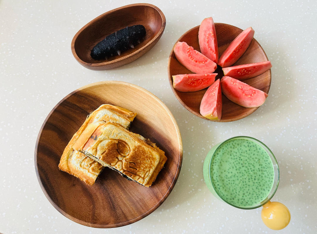 蟹柳蛋三明治🥪+番石榴+纯奶🥛