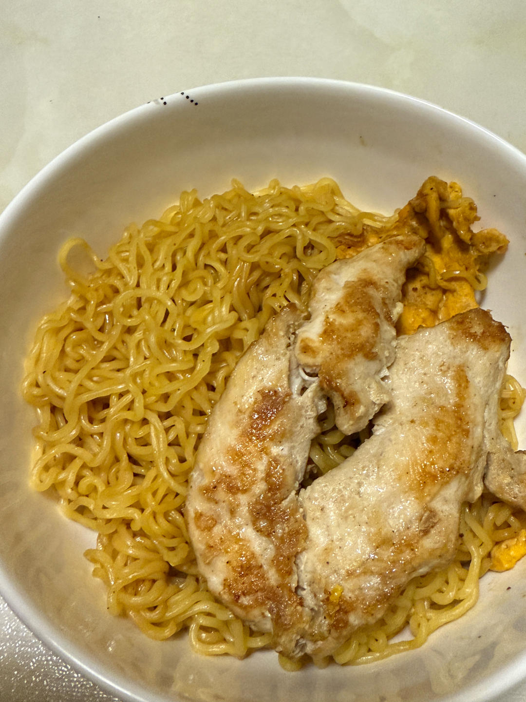 交作业~没有时间腌了直接煎了,配闷面,美味😋