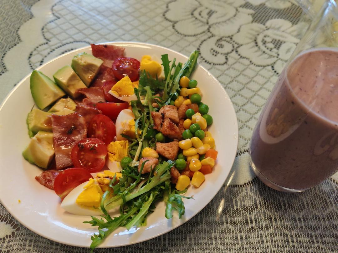 4.7早餐日记: 蛋白粉+维生素+玉米+樱桃+醋泡花生