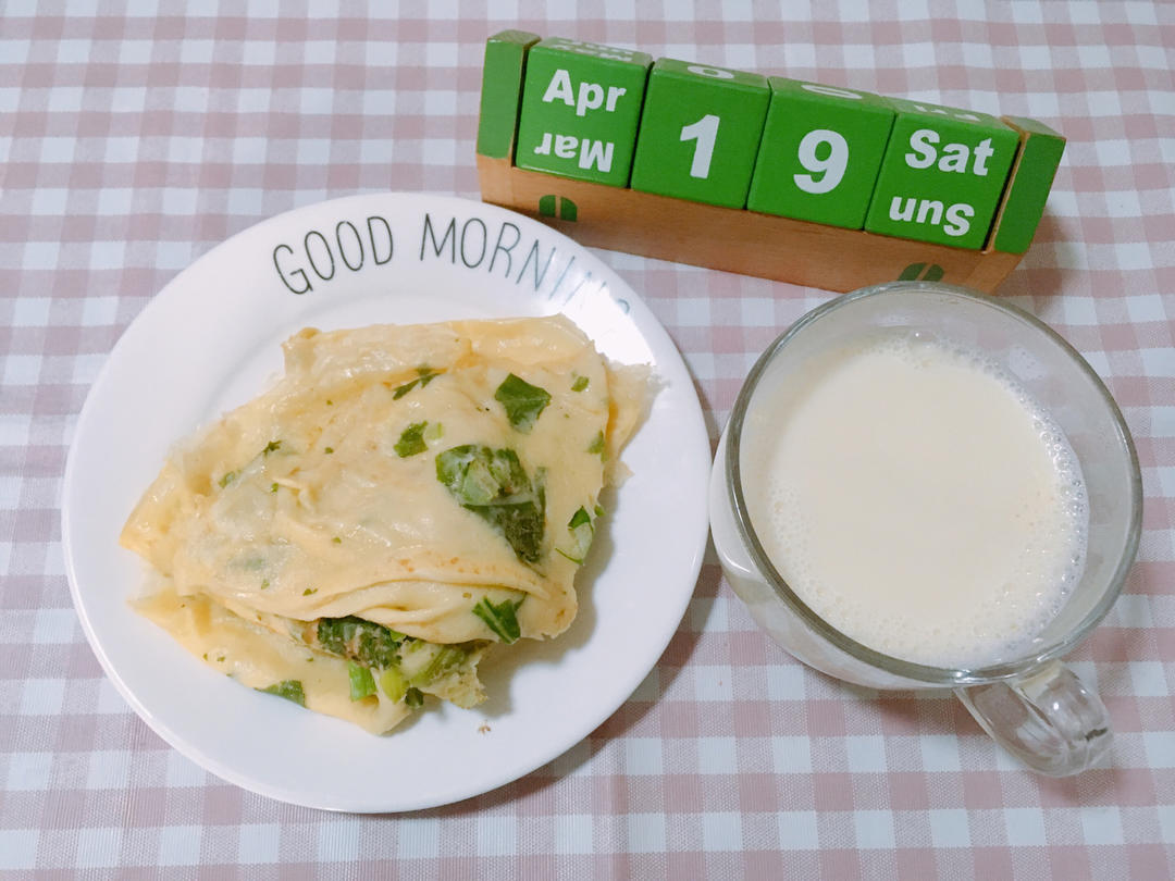 G8S2.W9Day6.葱香菠菜蛋饼配豆浆