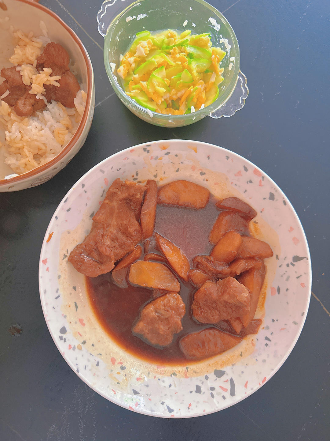 苹果猪排➕西葫芦炒鸡蛋➕米饭