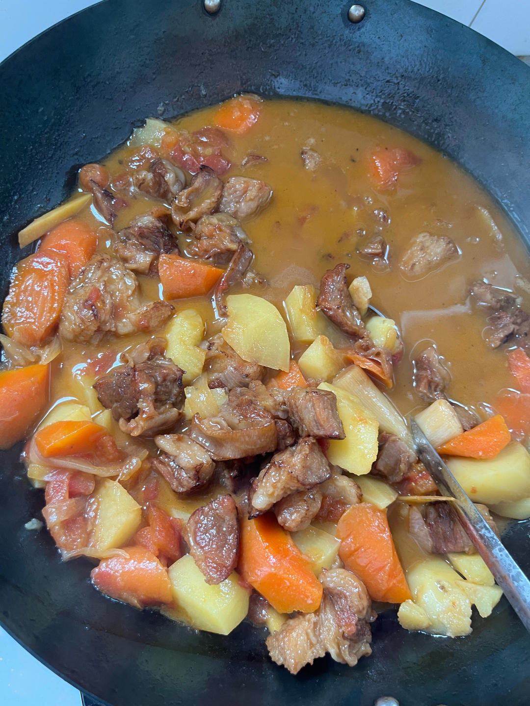 高压锅压了40分钟,倒出来加土豆再煮20分钟,土豆沙沙的太好吃了