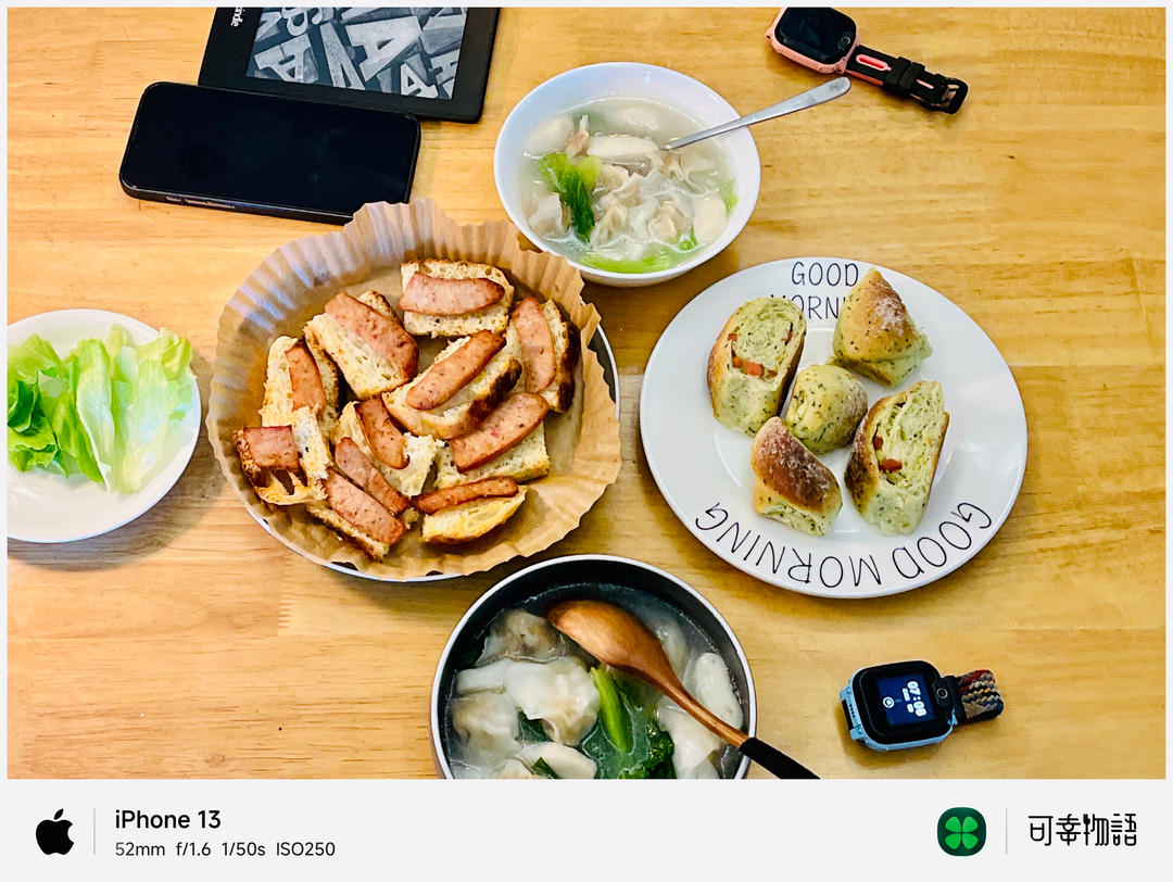 黄精鸡蛋汤,午餐肉麦芬