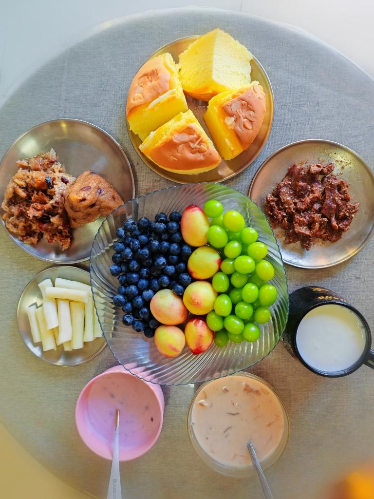 隔水蒸小白嘴山药、黑胡椒牛肉、杏仁牛奶蛋糕、香菇蛋黄杂豆咸肉粽、椰香豆乳野米花胶杂粮羹、草莓桑椹酸奶、水果三拼(云南阳光...