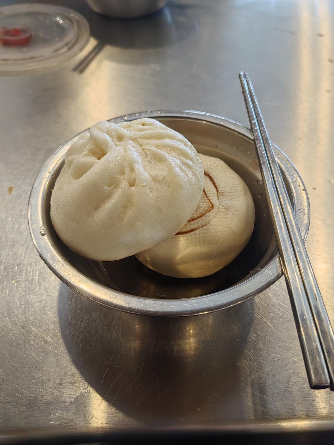 食堂早餐,包子和豆沙卷