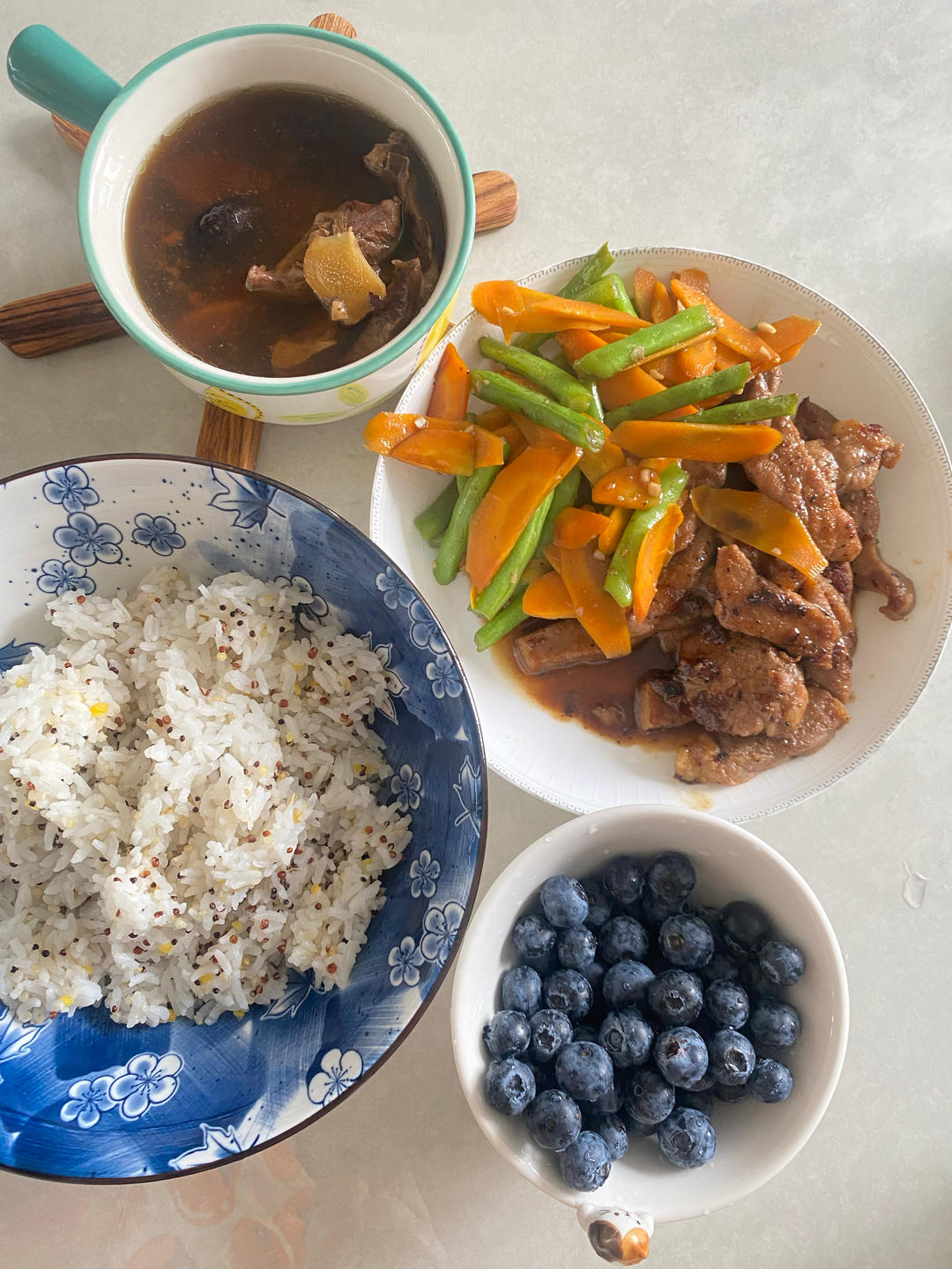 鲍鱼烧排骨 空心菜 冬瓜蛋汤