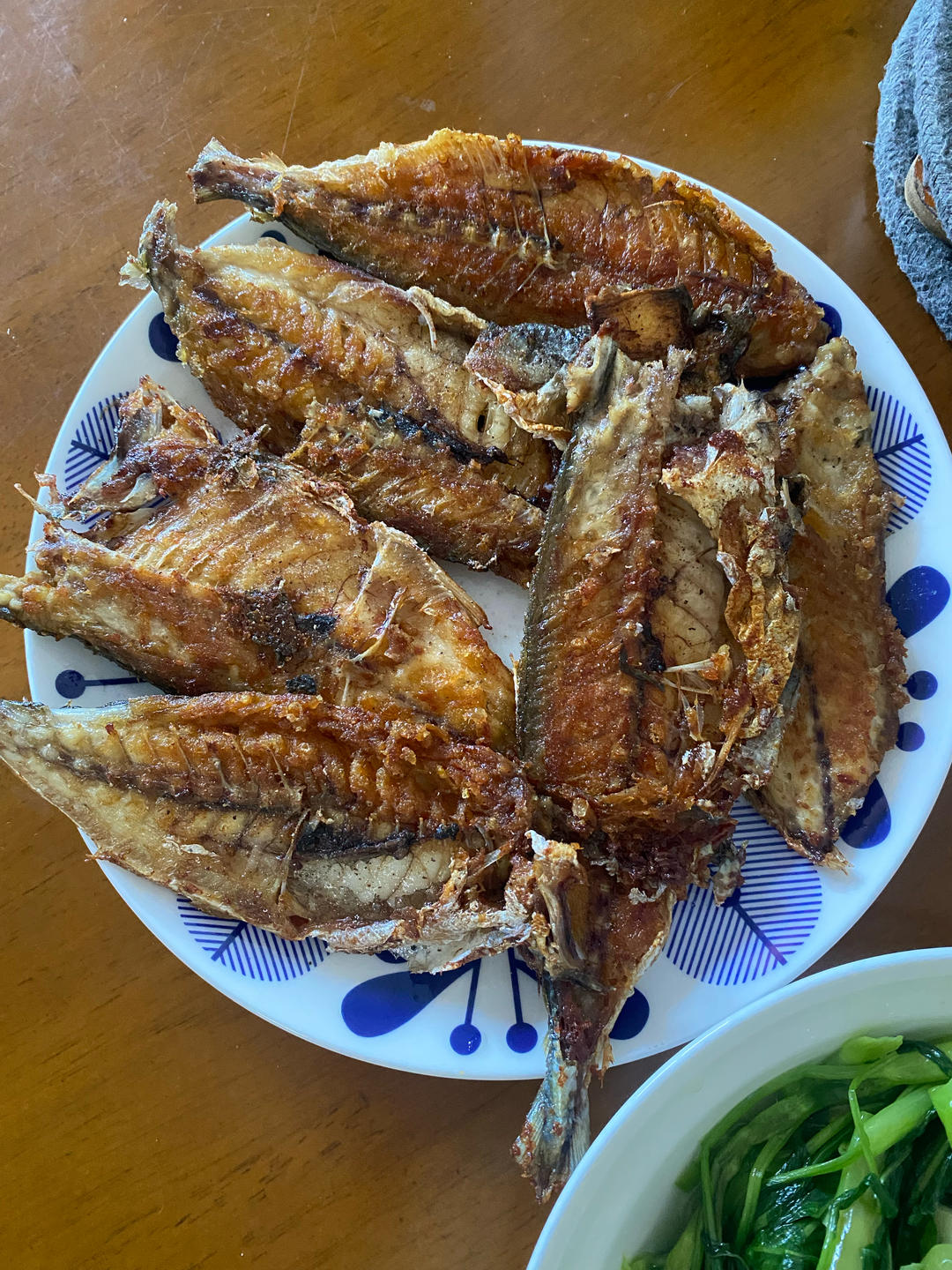 酱油带鱼,蒜茸茼蒿,冬瓜排骨汤,米饭。