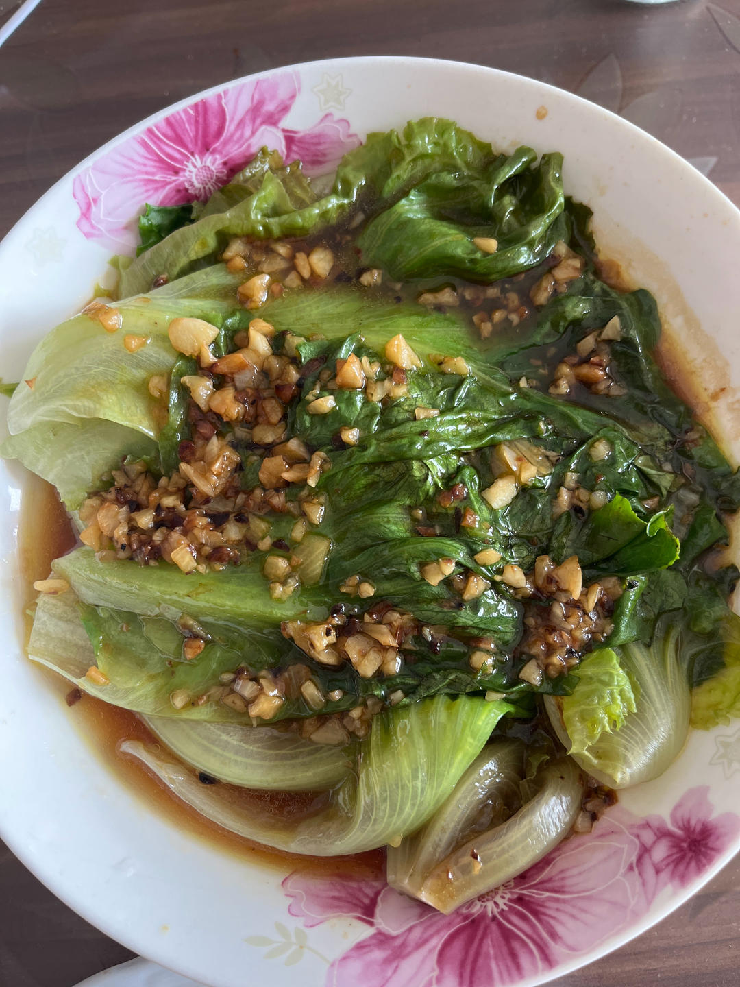 蒜炒糊了,但味道还可以,焯水的时候放了点油,颜色还不错