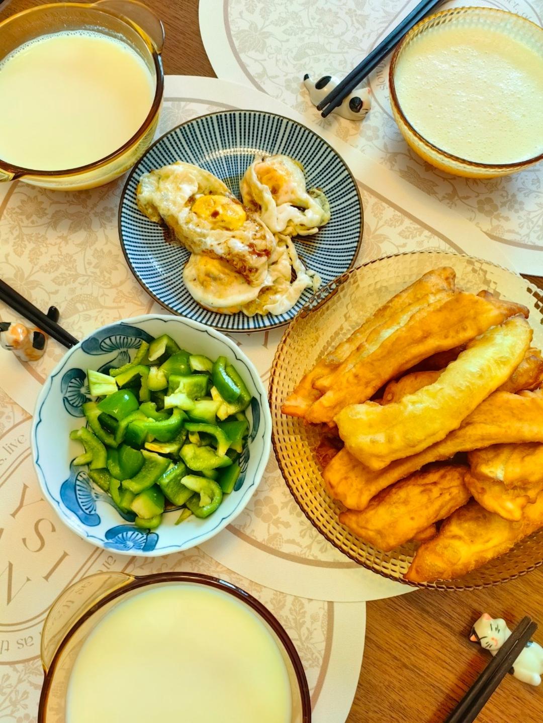 磨了豆浆、炸了油条,中国式早餐真满足。昨晚和了油条面,一斤面粉炸了两大盘油条,过瘾了🤭