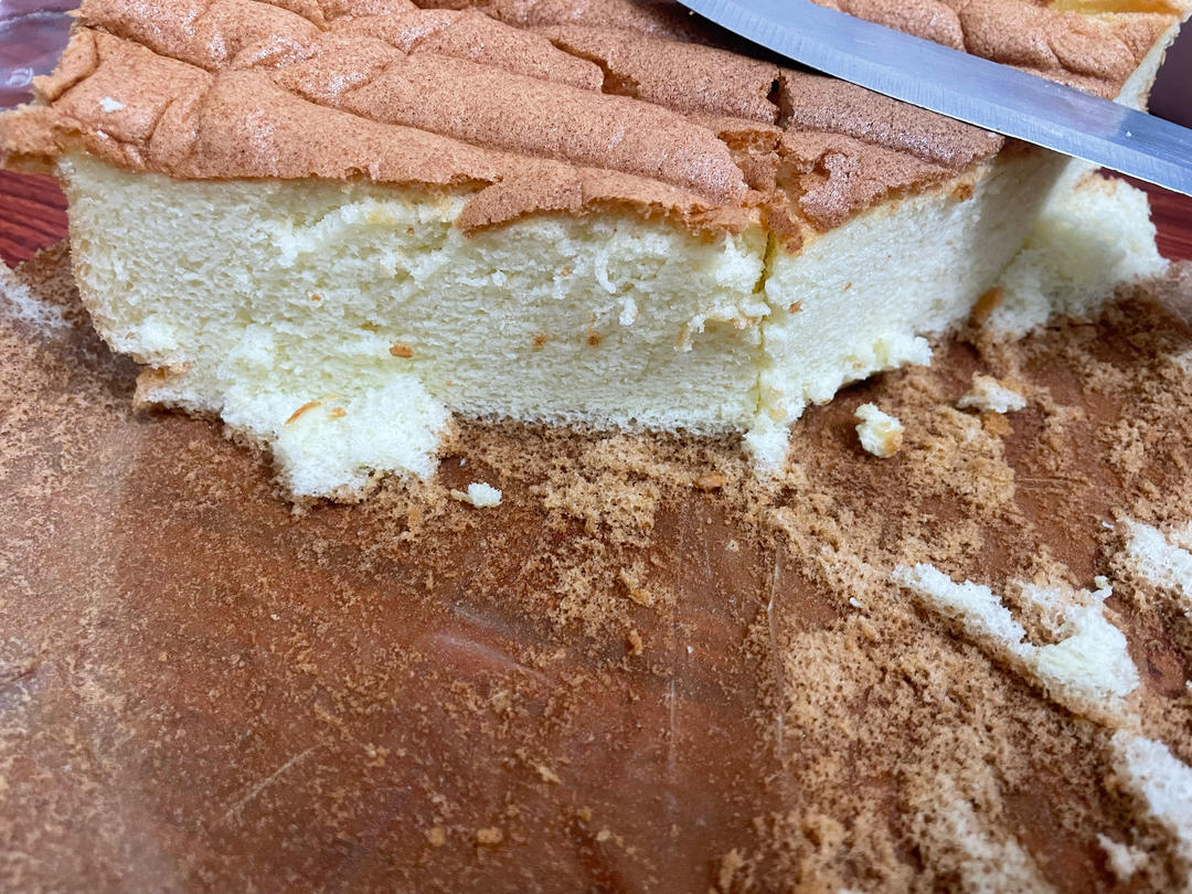 用了5个蛋起得太高了,时间一到就拿出来回缩了很多,蛋糕是很软的,甜度也配得刚刚好。路过的大神能不能帮我看看图二的蛋白打得...