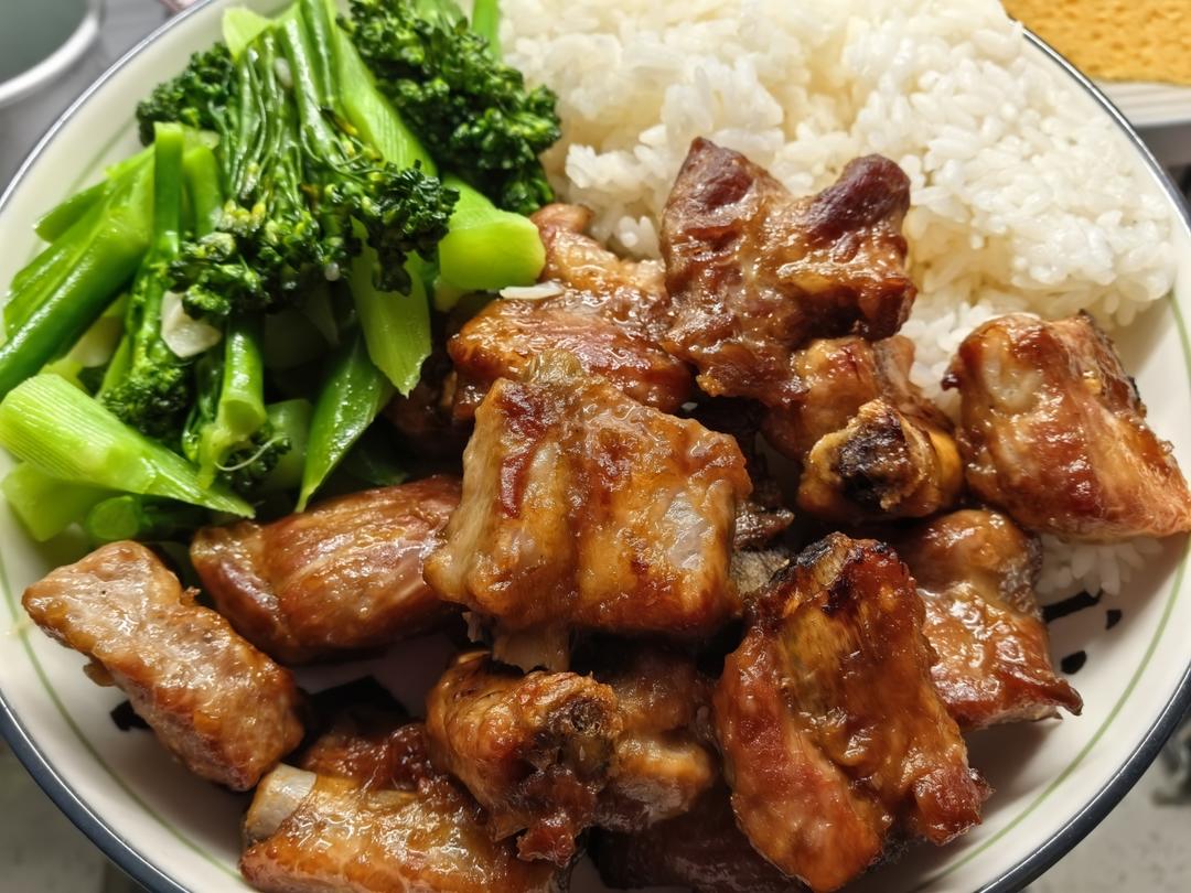 烤排骨、清炒甜杆西兰花