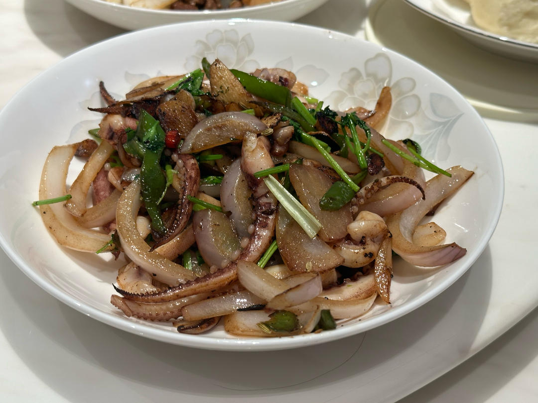 自制健康餐5|辣炒鱿鱼腿、肉炒小白菜