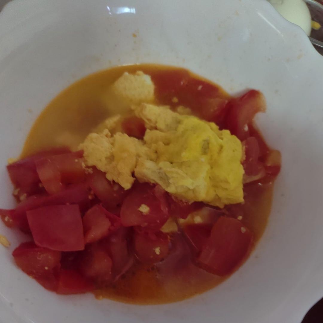 番茄炒蛋,菌菇面,莲花白,玉米
