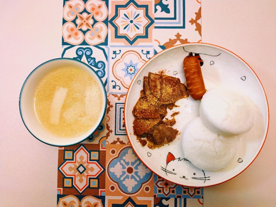 Day470.米糕+芝士烤肠+牛肉+排骨萝卜汤