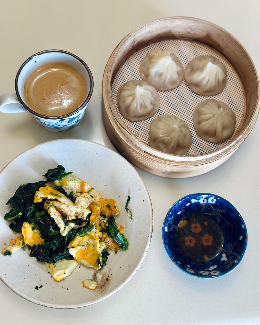 自制小笼包+菠菜炒鸡蛋