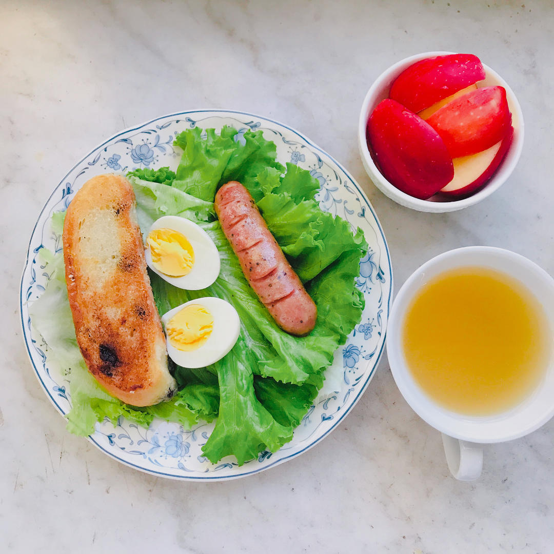 煮鸡蛋 黑椒肠 果茶 小苹果...