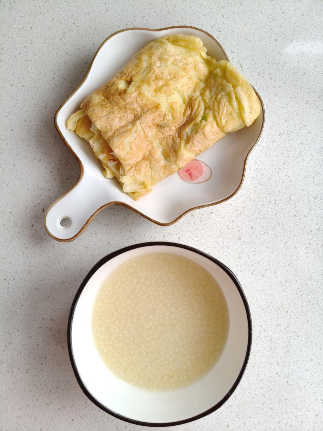 周六早餐 : 鸡蛋饼+小米粥
