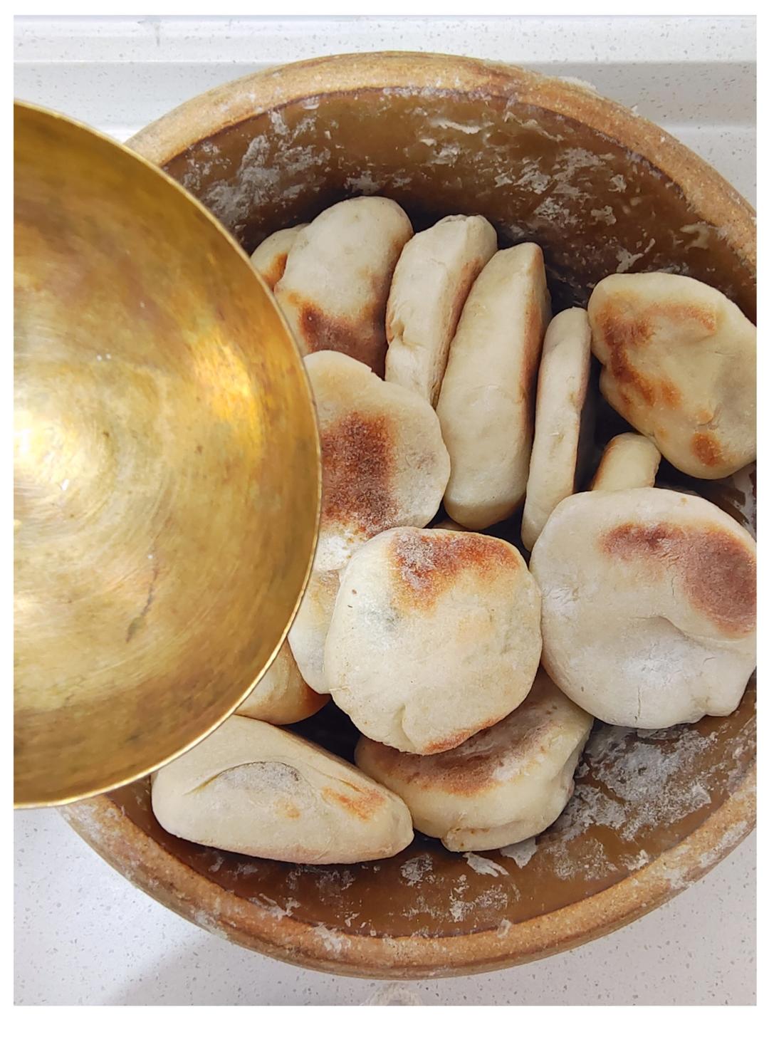 我用三铜勺的面粉做出来三,十,个大小不一的红糖饼。这是第二回,第一回做一半儿饿...