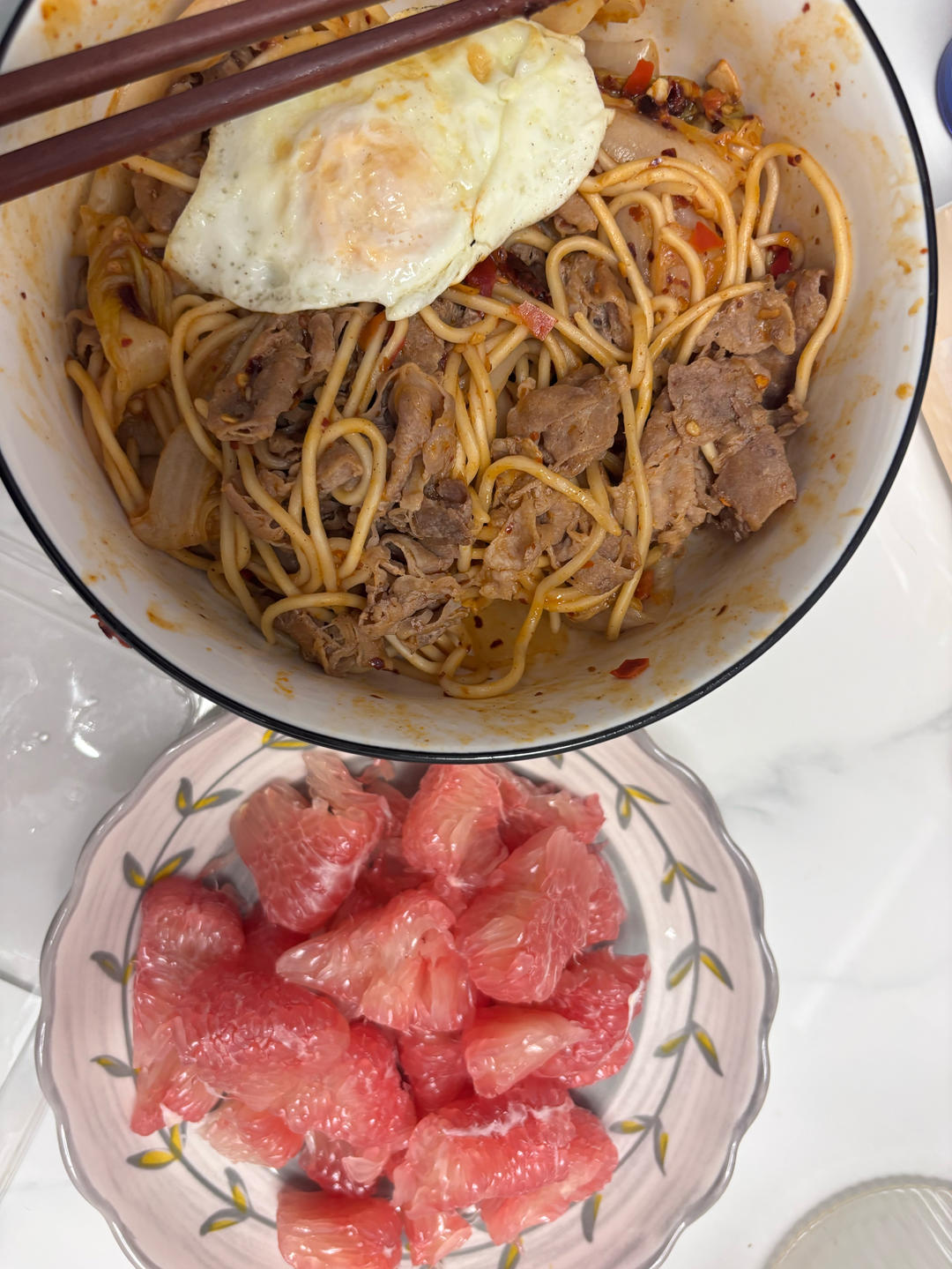 儿子上吐下泻,本来想出去吃饭,被迫在家煮面和青菜,微波炉弄的葱油拌个面,太香太好吃了。