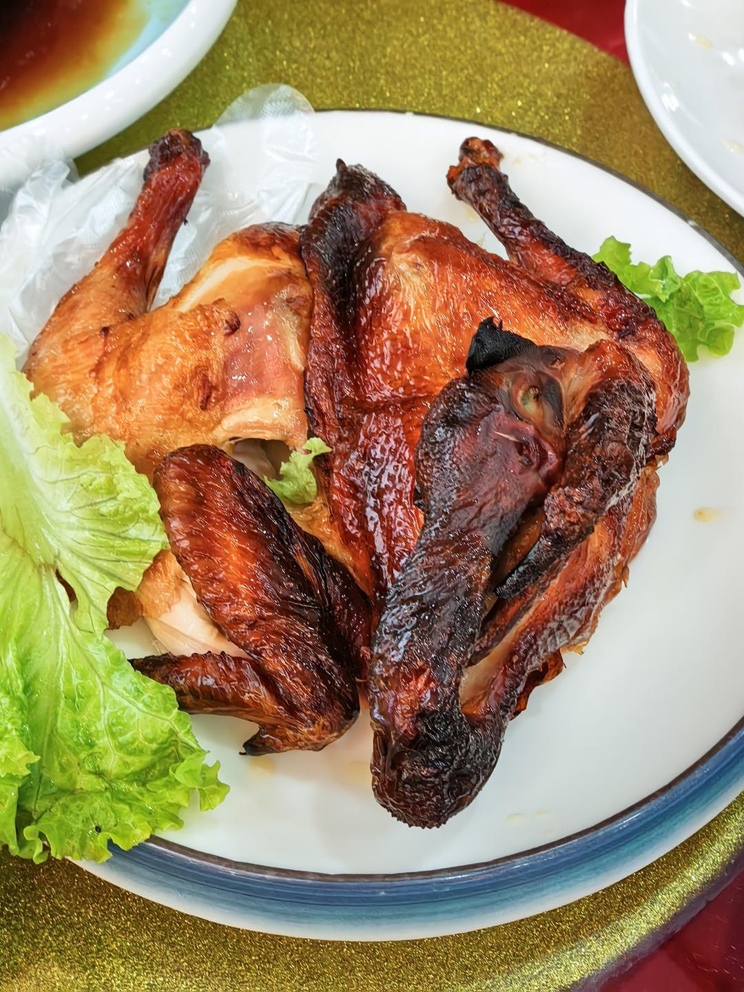 烤鸡,三个孩子吃了个鸡腿,鸡翅,据说是青岛婚宴的三件套