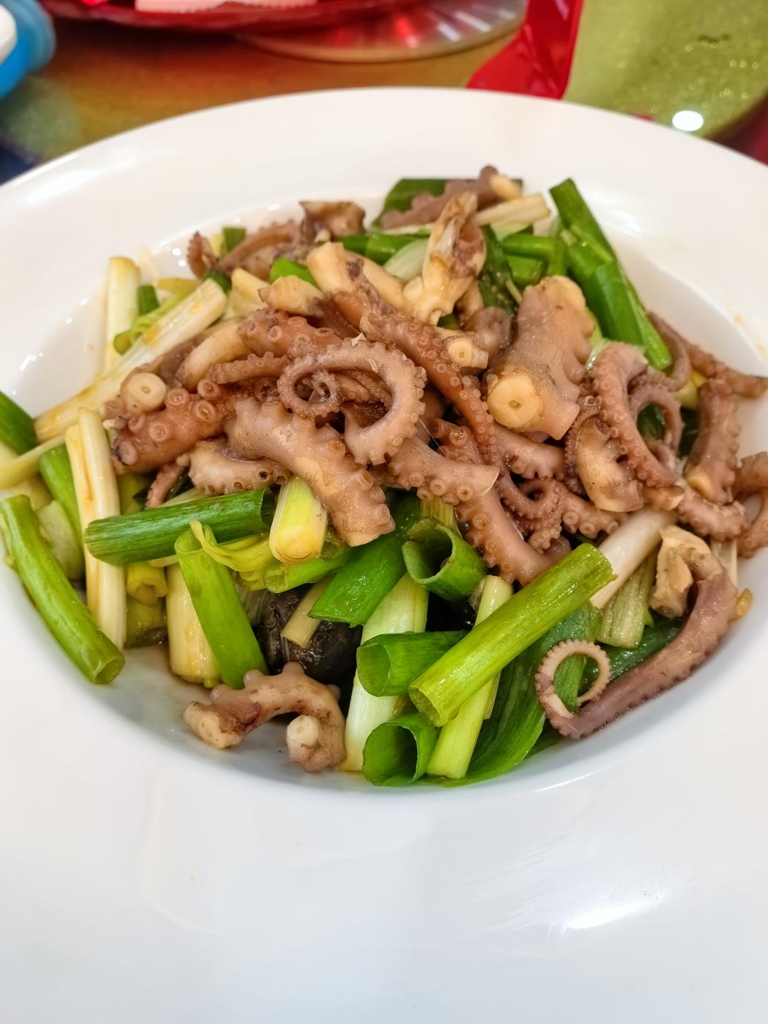 甜葱拌八带,就吃了一个八带腿,真新鲜呀!
