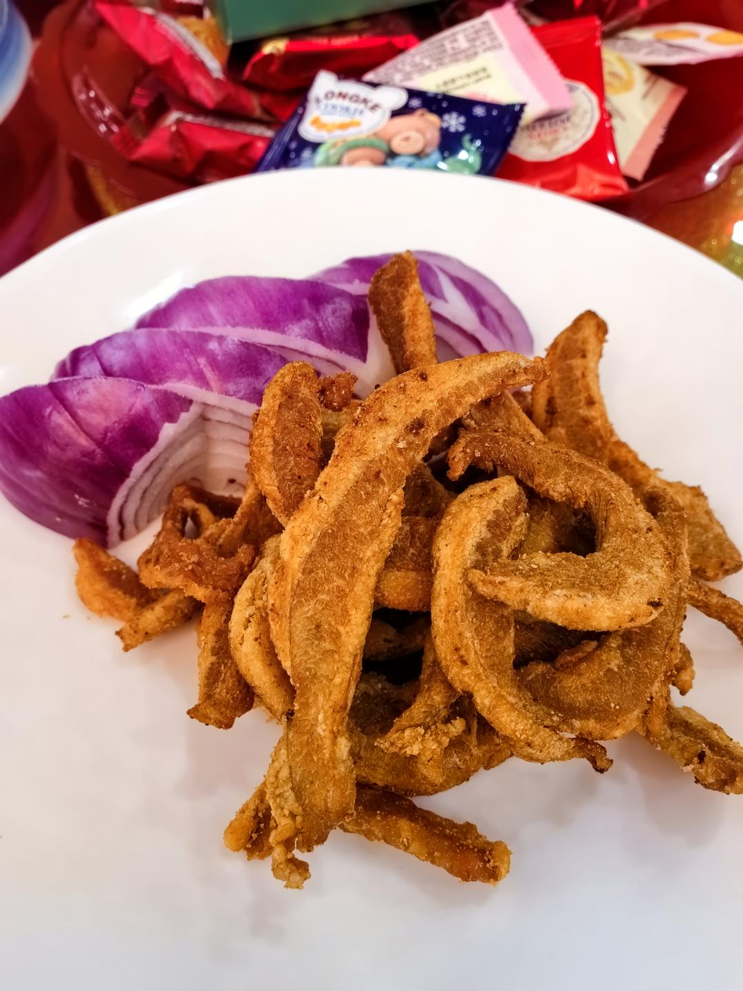 大哥最爱吃的脂渣,回家前又去市场买了两袋。