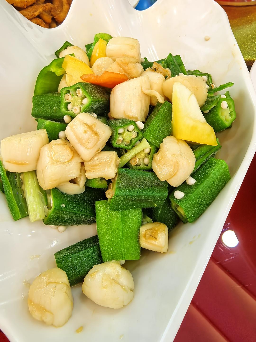 不愧是海滨城市,拌个秋葵还要放扇贝。