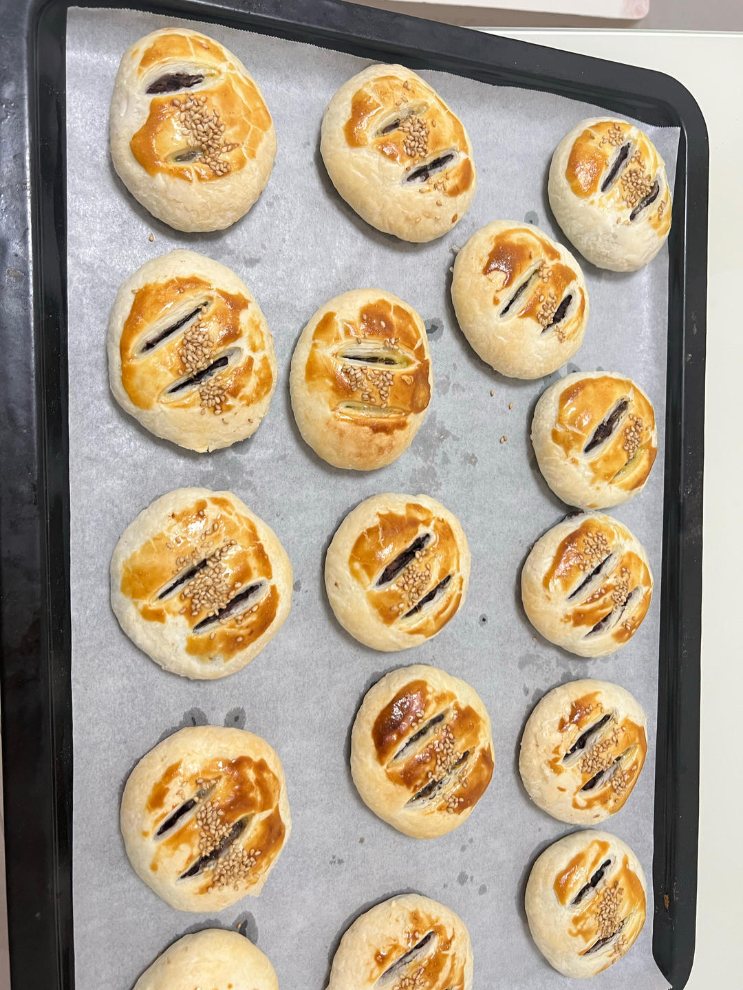 没有烤盘,做的比较随意,焦的好吃,不能做的太大了