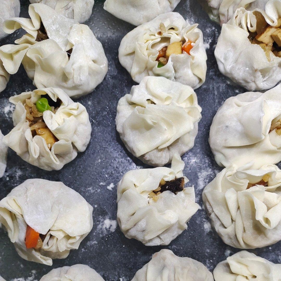 700克糯米,大半根胡萝卜,小半碗豌豆米,500 g瘦肉,一根玉米,15朵香菇,大半个洋葱