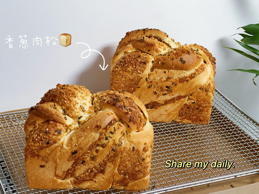 今天的肉松吐司还有南瓜巴斯克。昨天翻车的小餐包。