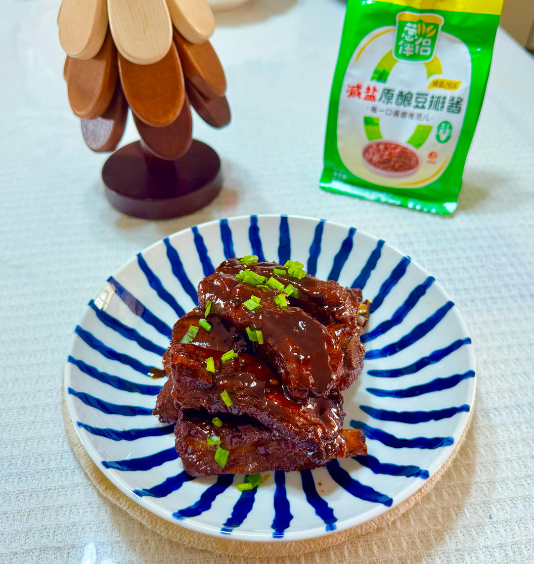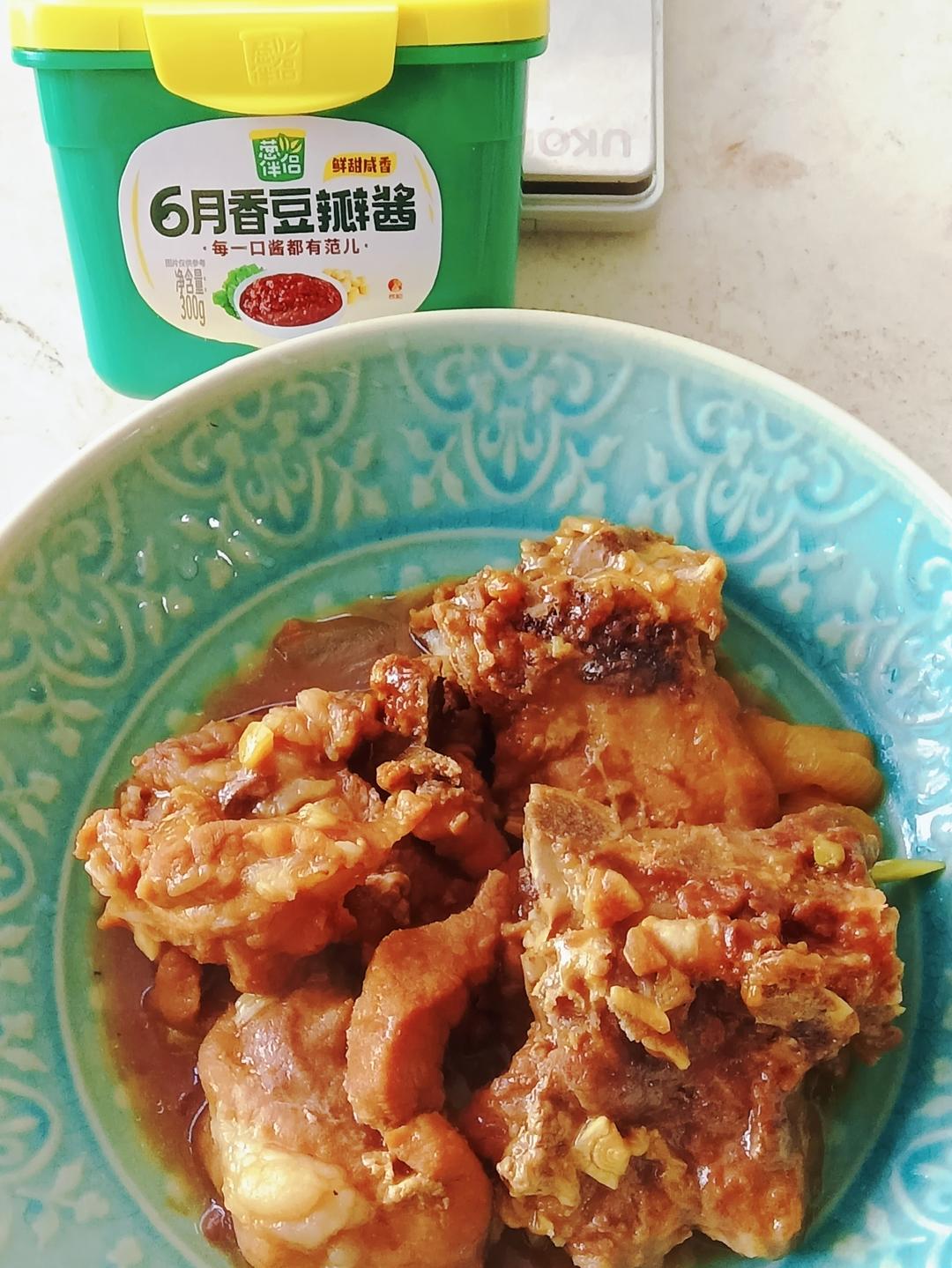 做法简单,无需过多调料,只放了葱伴侣6月香豆瓣酱和甜面酱的焖排骨,酱香浓郁...