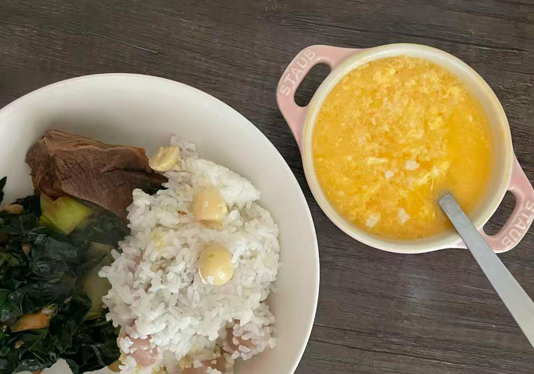简餐,芋圆放在米饭里,好像在吃糯米蒸丸子。