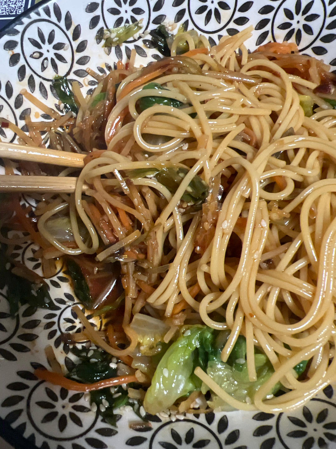 加了一些白糖,青菜和土豆丝胡萝卜丝,味道不错!