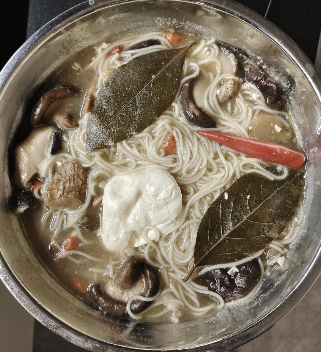 【香菇鸡蛋面】细面条+鸡蛋+香菇+油盐+香料(葱姜八角肉桂香叶小米辣)