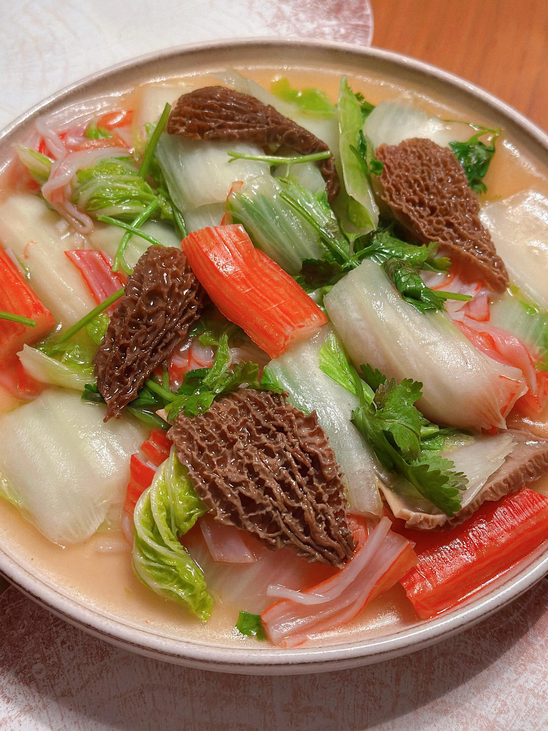 简单又鲜甜的娃娃菜羊肚菌炒蟹肉棒