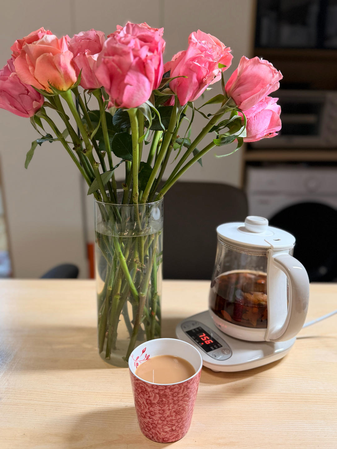 今天山上下了大雪,晚上看电视剧的时候,煮了桂圆红枣枸杞玫瑰红茶。