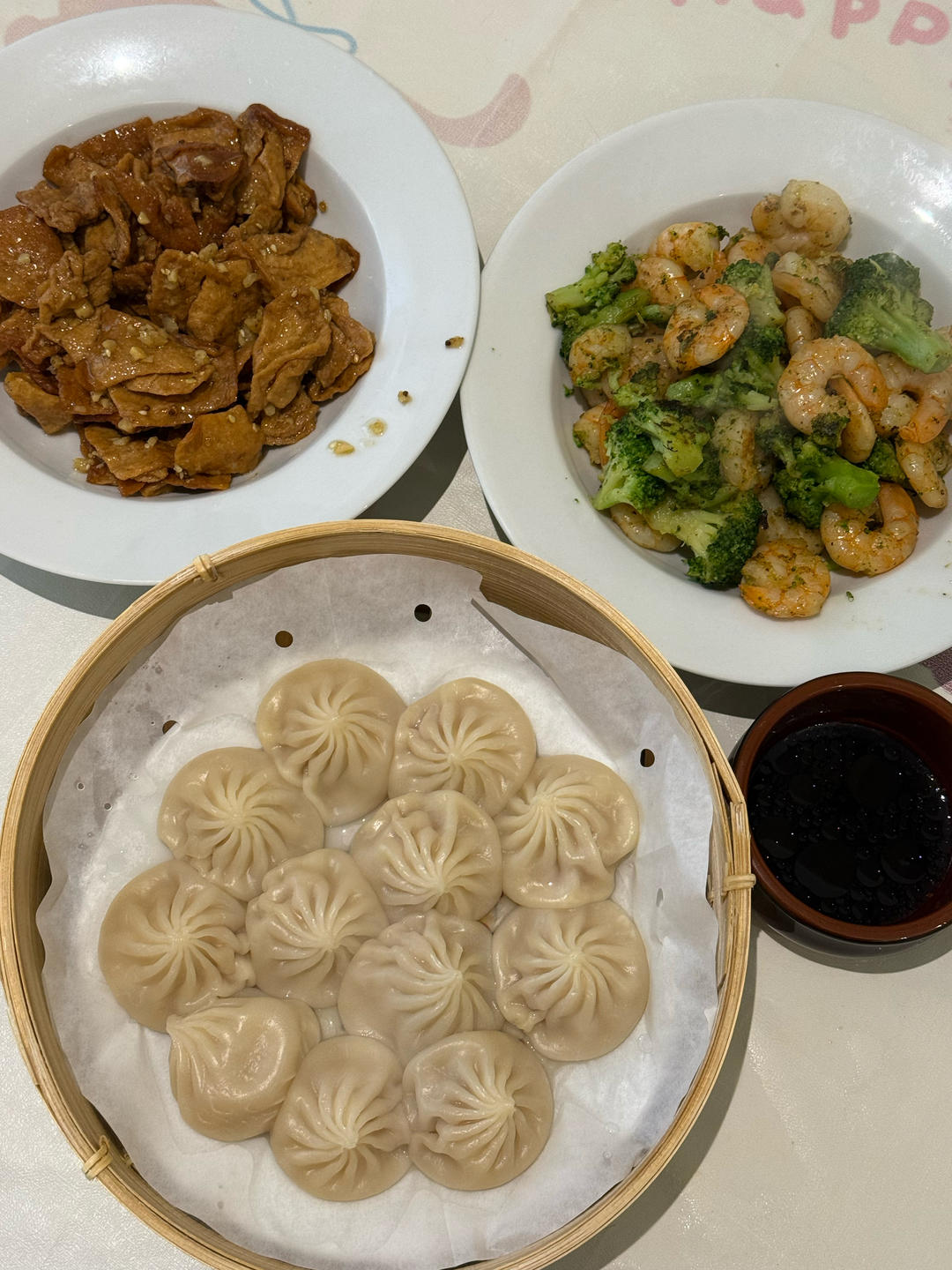 韭菜饺子,烫青菜,南瓜汤,柿子