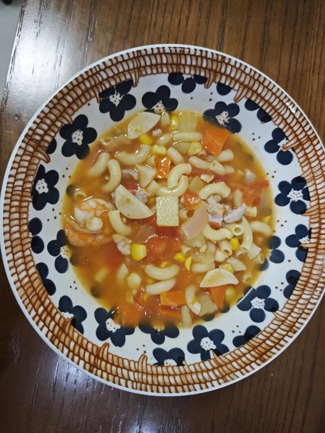 番茄玉米墨鱼丸鲜虾通心粉