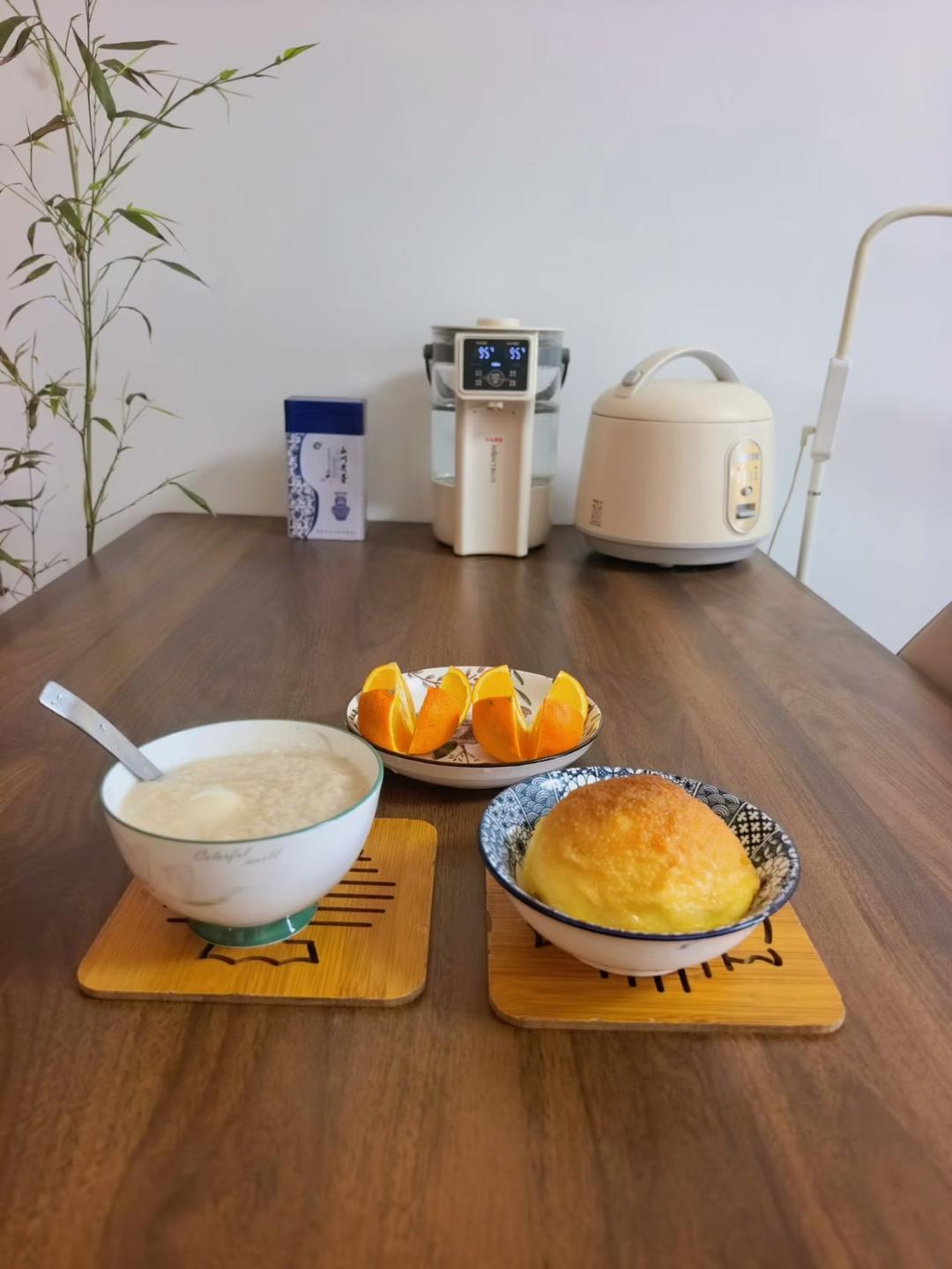 【早餐心语】不一定每天都过得快乐,只想保持每一天平和平静。椰蓉面包、燕麦荷包蛋、橙子。