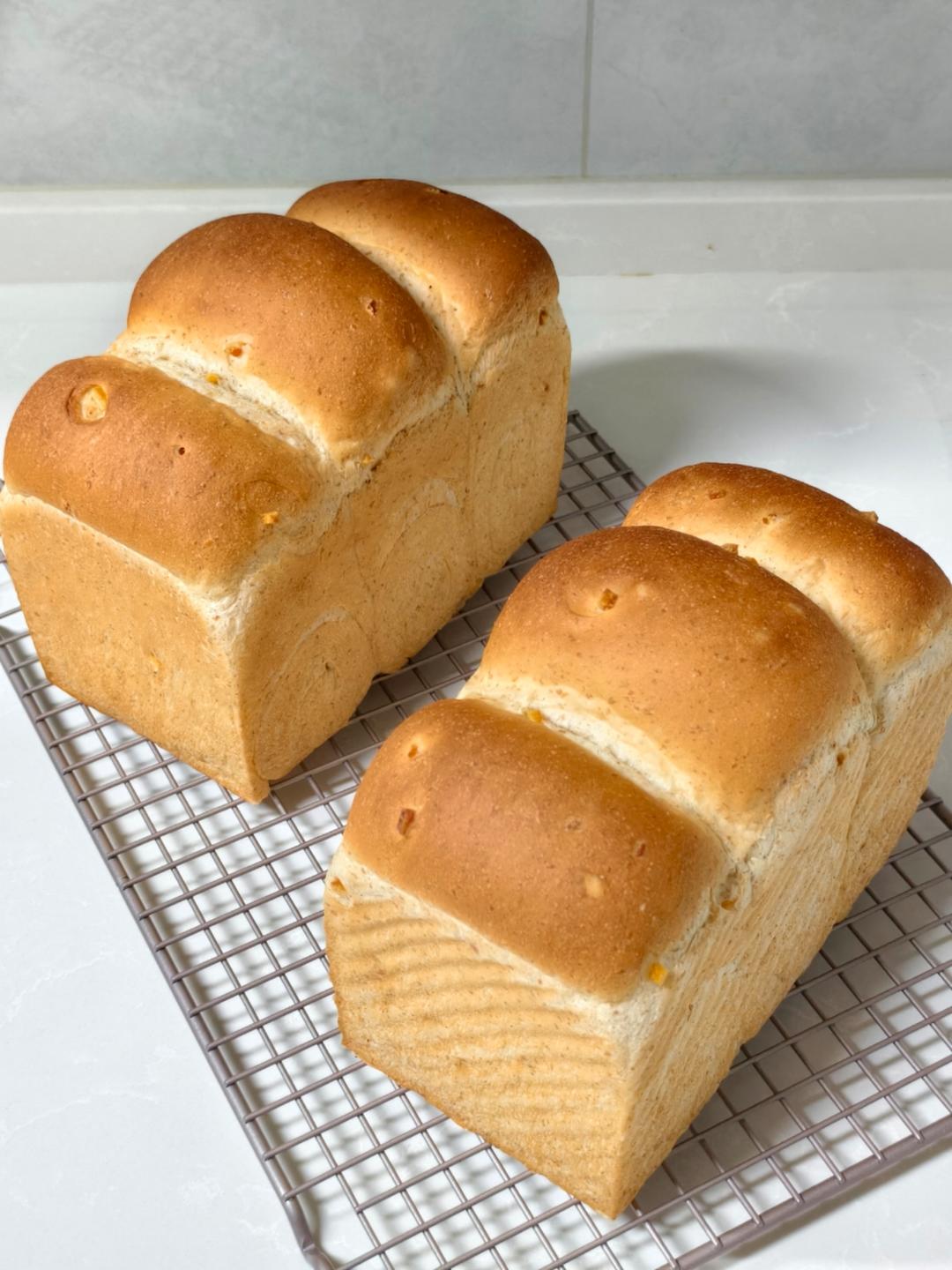 新鲜出炉加了橙皮丁的吐司,100克T150+100克柔风做了波兰种,300克柔风,一个鸡...