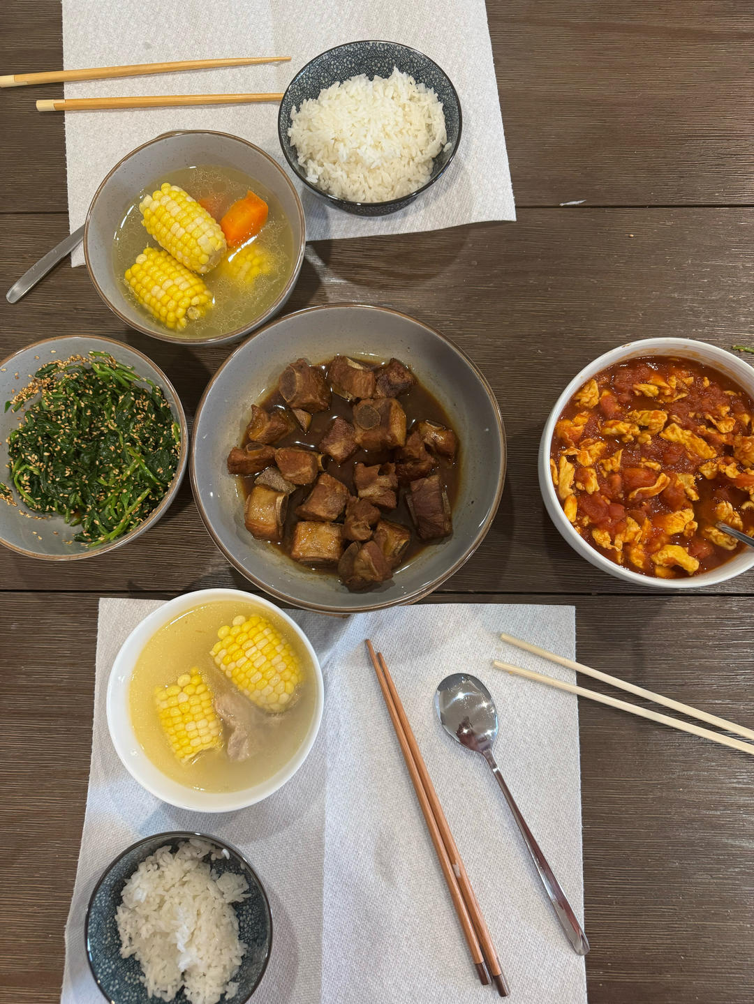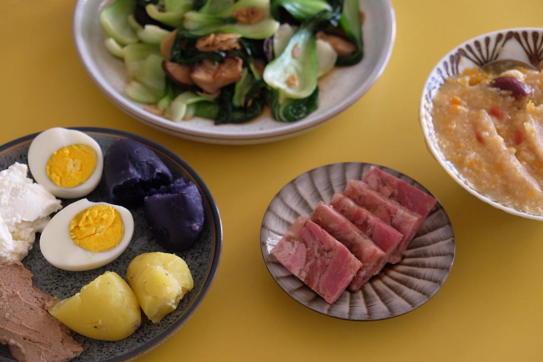 本来只想简单喝个粥,但是煮的有点稀怕吃不饱,于是东搞搞西搞搞,最后要多洗两个碟