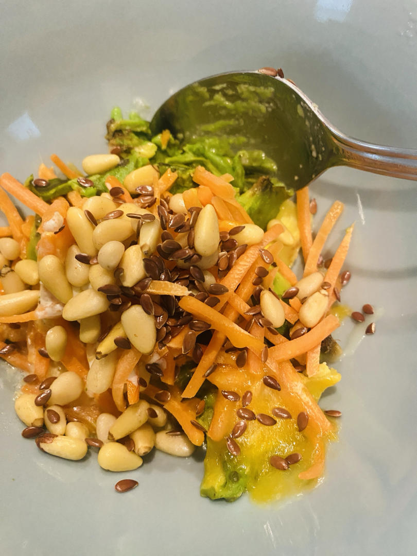 牛油果 鸡蛋 松子 胡萝卜丝 亚麻籽 橄榄油
