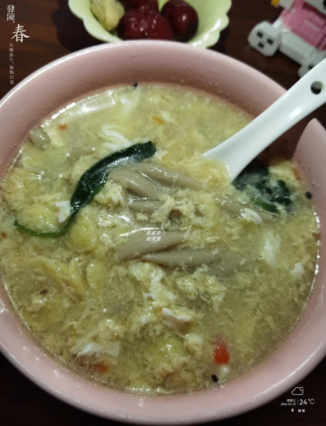 今日份元气早餐:朱雀汤什锦筱面鱼鱼+花生🥜+红枣+杏仁 #早餐•20...