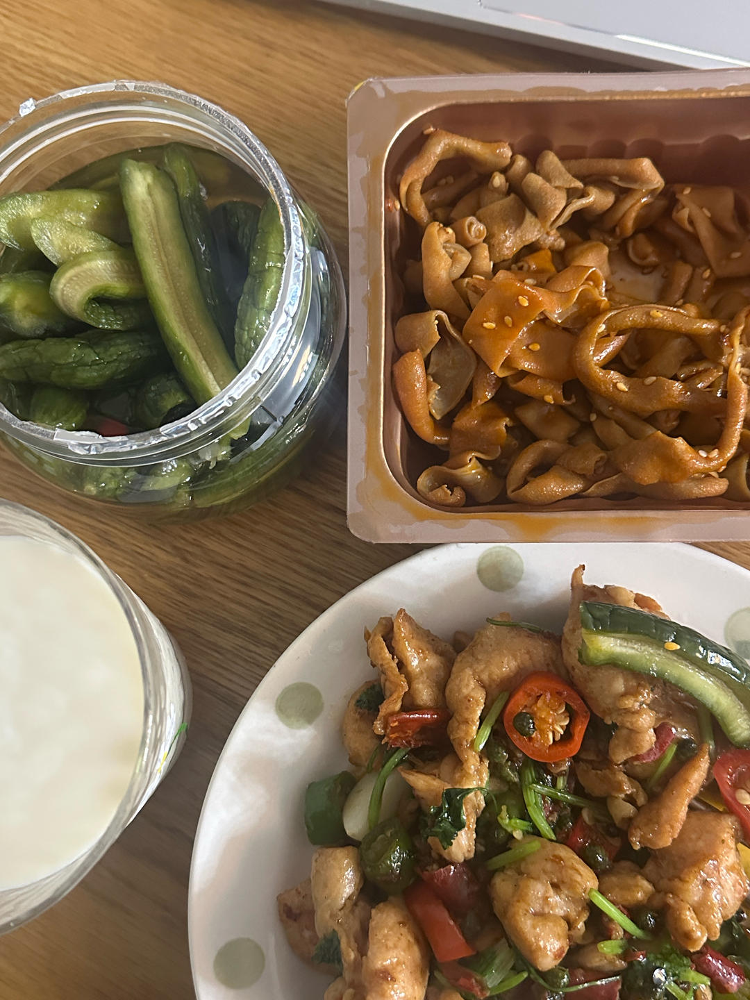 葱油饼 鸡蛋 香肠 泡菜 胡萝卜🥕 麦片牛奶桑葚干