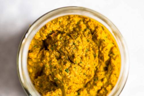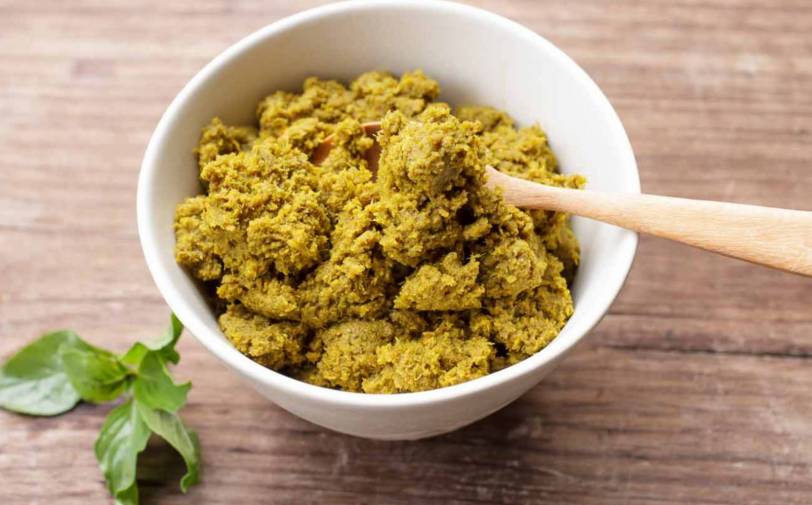 7. 加入盐、虾酱,混合均匀,地道的泰国绿咖喱酱就做好啦。