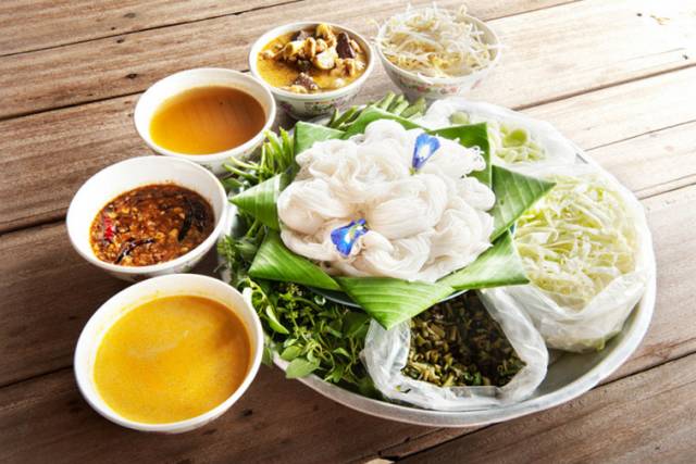 Khanom chin 是一种类似四川酸辣粉的泰国米粉,你可以选择自己喜欢的咖喱(鱼、鸡等)配上豆芽、冬瓜等新鲜蔬菜及腌菜,拌上米粉就可以美餐一顿啦。