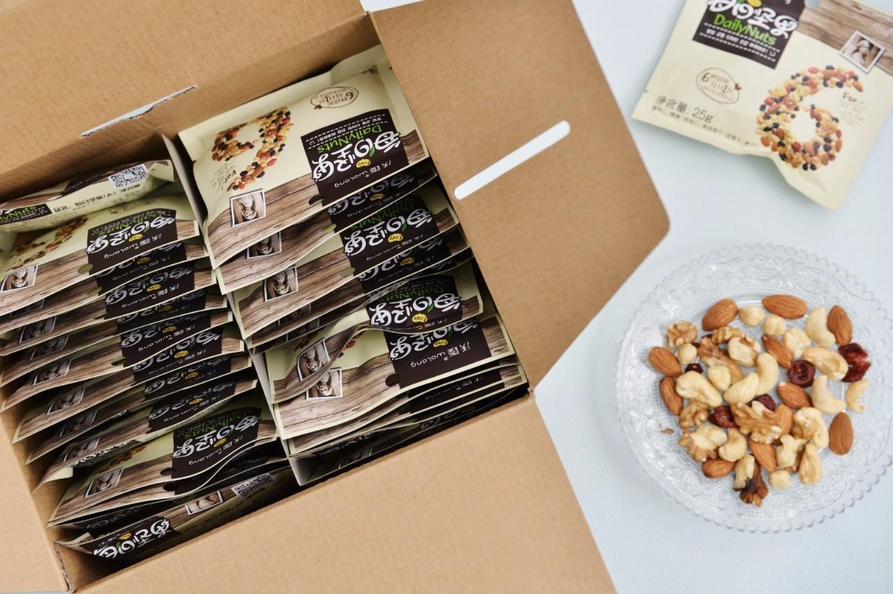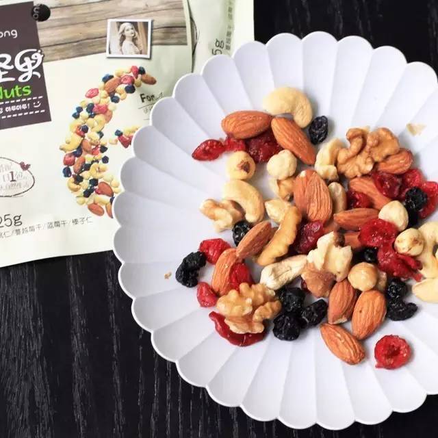 每一小包每日坚果有25g,量虽不大,口味却很丰富,不怕一次吃太多,出门带着也方便。厨友@水中央701 吃的是成人版,评价道:“每小包里面有大杏仁、腰果、核桃仁、榛子仁、蔓越莓干、蓝莓干共六种,搭配很好,品质也很好,干果仁不是盐焗也没有加糖,原味的才健康,干果跟甜的莓干搭配吃也不会腻。放办公室下午茶时吃。”