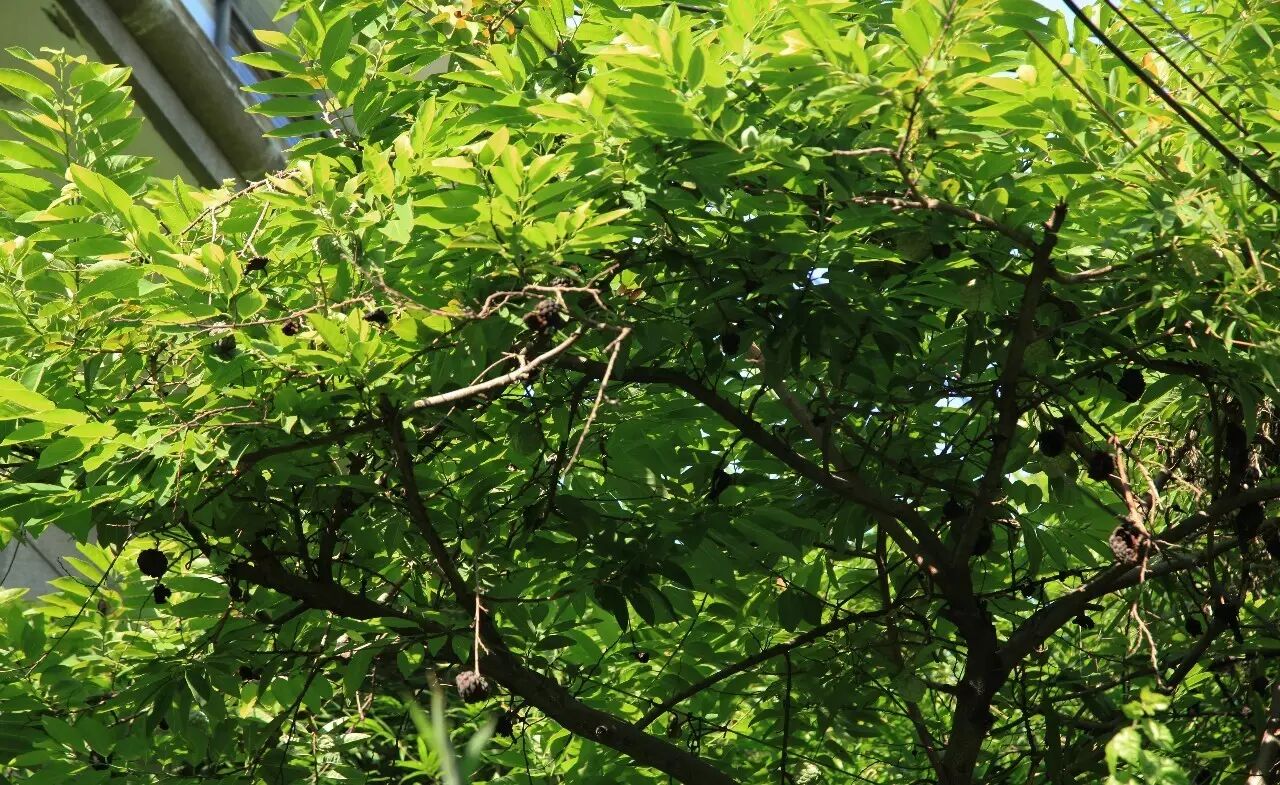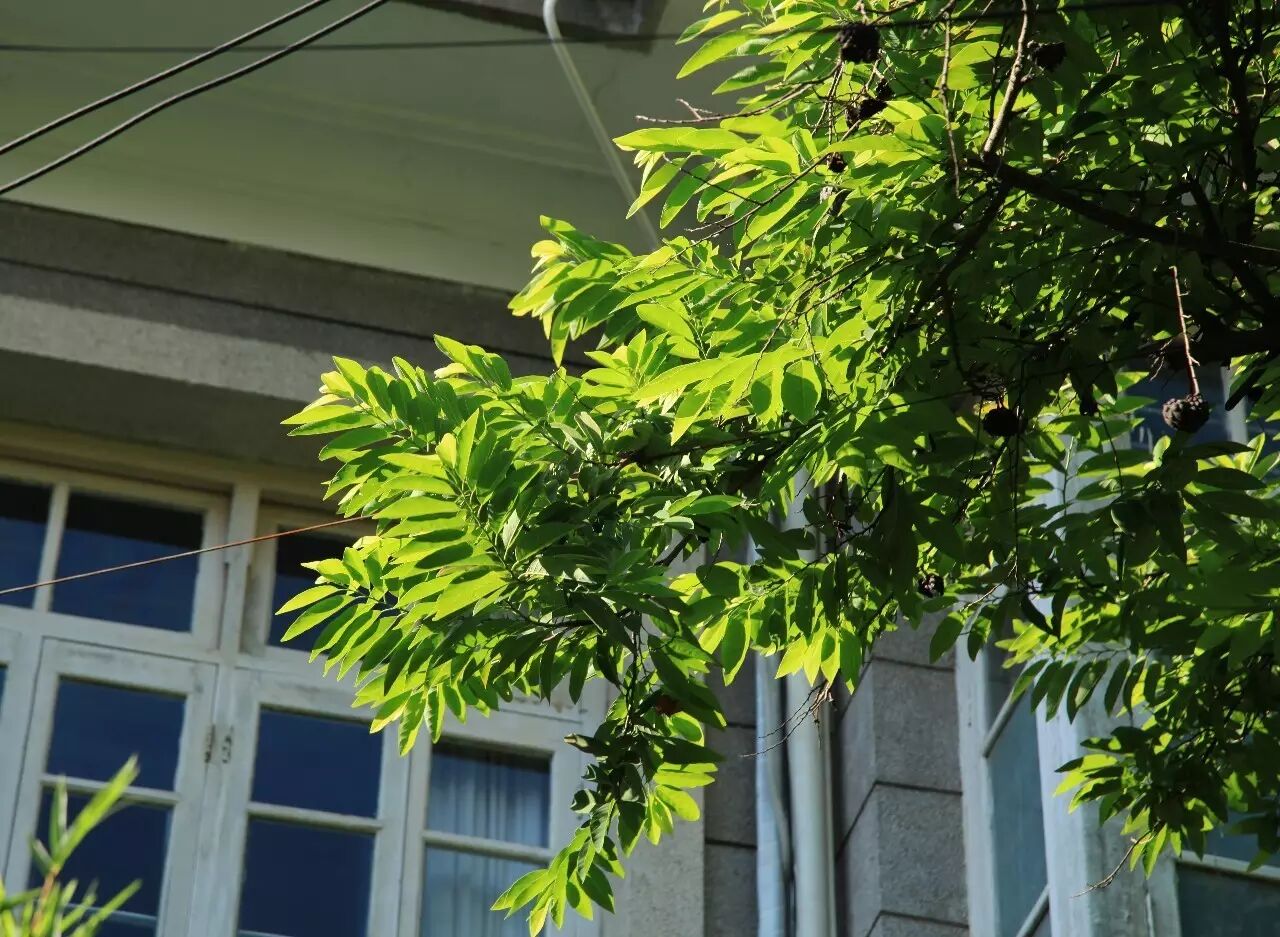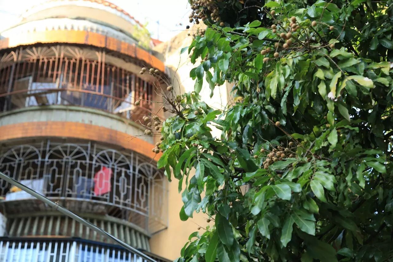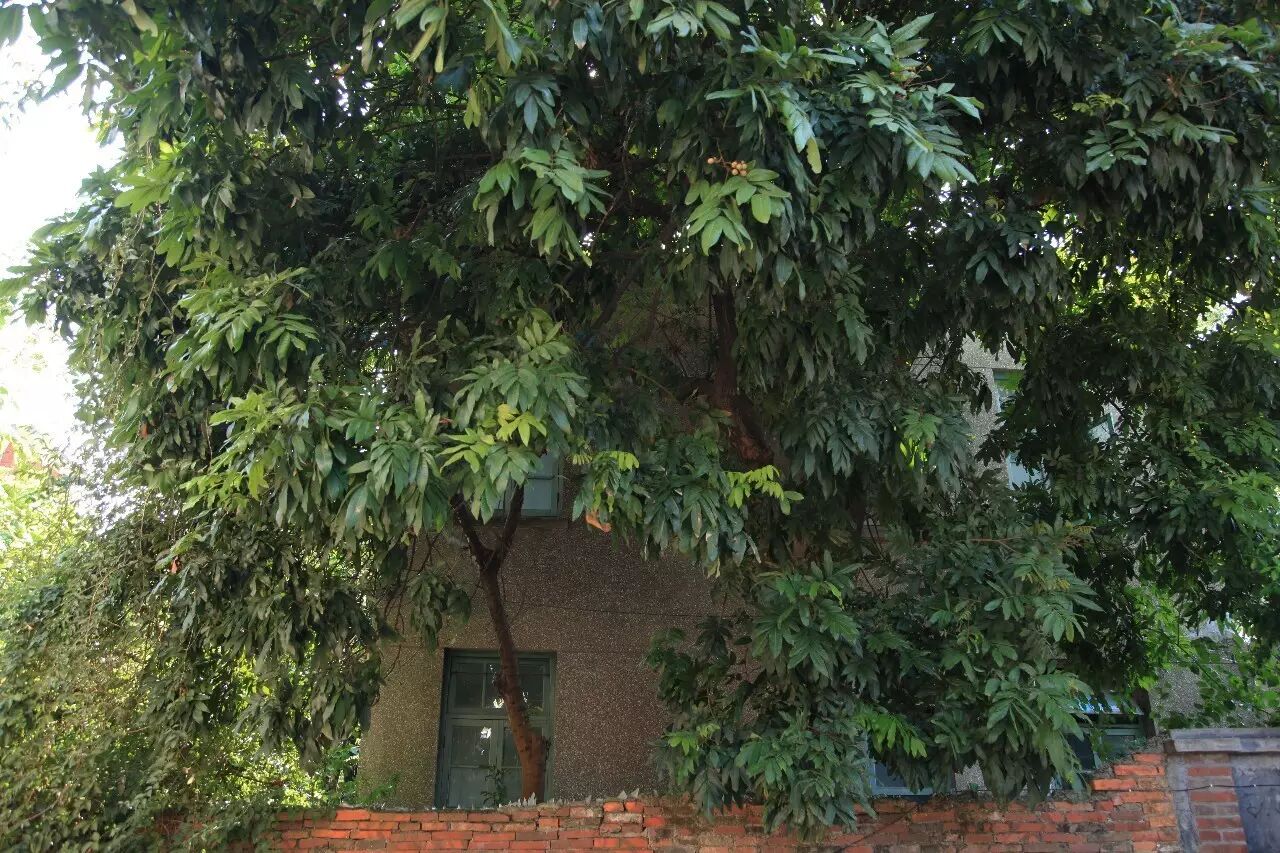 对于龙眼树,印象最深的就是南华路的那株了。这条窄巷一般的小路,唯独那树长得高大,从一侧墙边探出头来。曾路过好几次,其枝粗冠蓬,足足有一幢楼宇大小。也因此,住在附近的人们一年里的风吹日晒,得巨树庇佑;每逢初秋之时,又结得串串龙眼。