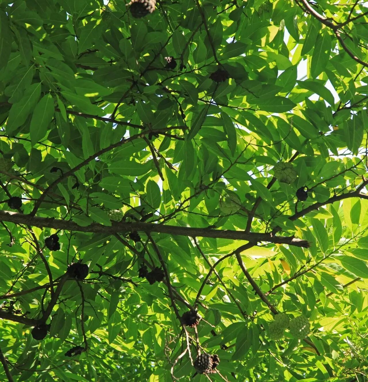 六月看见它的时候,树上蜷缩着黑色的释迦果,像是烧焦的黑色,应是遗留的果实。