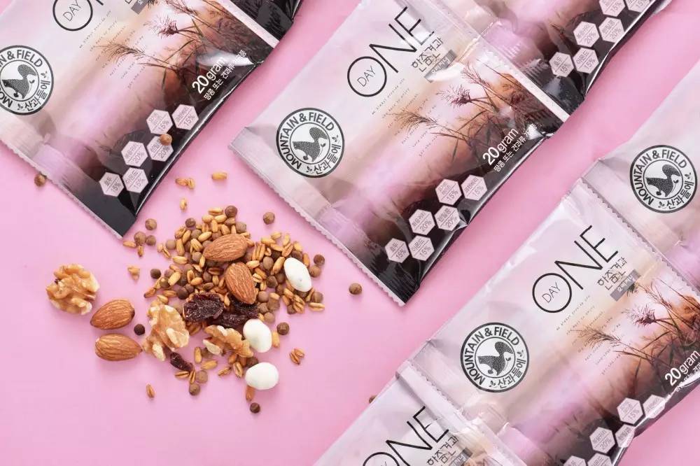 来自韩国Mountain Field是专营优质坚果的人气品牌,它的ONEDAY每日坚果套餐,能满足以上所有要求。每袋20g,恰好符合人体每日的摄入需求。
